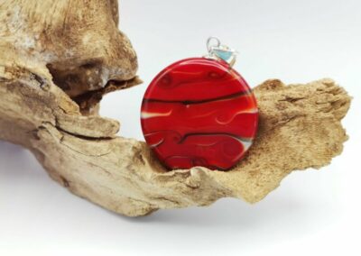 Ein wunderschönes, tiefes Rot, nicht aufdringlich aber doch präsent. Mein Lieblingsrot. Mit ein wenig Grau dazu ergibt dies einen jederzeit tragbaren Anhänger. Jedes Stück ein Unikat.