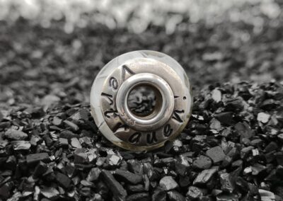 Modulperle aus Glas und Sterlingsilber. An den Seiten hat diese Perle die Worte: Vertrauen und Freundschaft eingraviert. Passend auf die gängigen Sammelsysteme.
