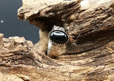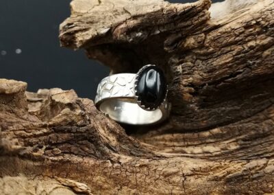 Handgefertigter Ring aus 999er Feinsilber mit einem Onyx
